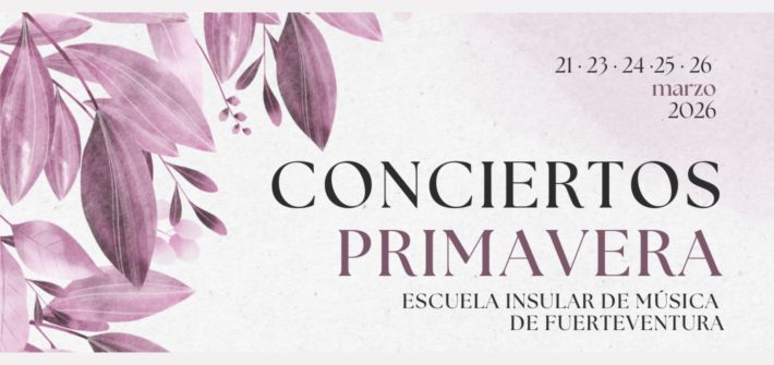 Nos complace invitarles a los Conciertos de Primavera de la Escuela Insular de Música de Fuerteventura, del 21 al 26 de marzo, en Puerto del Rosario y Antigua. Cinco días de música en directo donde disfrutaremos de guitarras, timples y laúdes, proyectos colectivos, audiciones temáticas, el concierto del profesorado y el de las escuelas. Como […]
