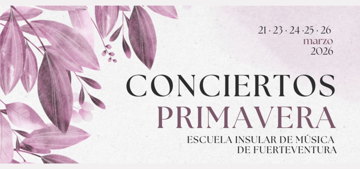 Nos complace invitarles a los Conciertos de Primavera de la Escuela Insular de Música de Fuerteventura, del 21 al 26 de marzo, en Puerto del Rosario y Antigua.